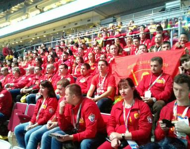После обеда комсомольская делегация отправилась на официальную церемонию открытия Фестиваля. Здесь ребята проявили себя как яркий и сплоченный коллектив: сектор стадиона, занятый делегацией ЛКСМ РФ, оказался самым «живым». Комсомольцы вновь скандировали речёвки и пели песни, а над сектором реяли красные знамёна.