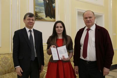 Поздравить ребят с окончанием учебы прибыл Председатель ЦК КПРФ Г.А. Зюганов. В торжественной обстановке тридцать четыре выпускника получили дипломы об успешном окончании учебы из рук лидера партии. В своем напутственном слове Геннадия Андреевича пожелал товарищам, чтобы верность светлым идеалам всегда горела в сердцах, а прохождение данных курсов послужило стимулом к достижению программных целей КПРФ. Он отметил, что в современных условиях именно образование является основным орудием в борьбе за права трудящихся.