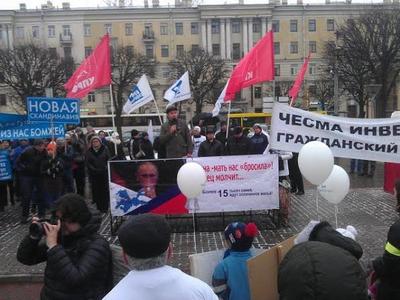 Более 500 человек собрал митинг, организованный Санкт-Петербургским городским отделением КПРФ в защиту «обманутых» дольщиков Санкт-Петербурга и Ленинградской области.