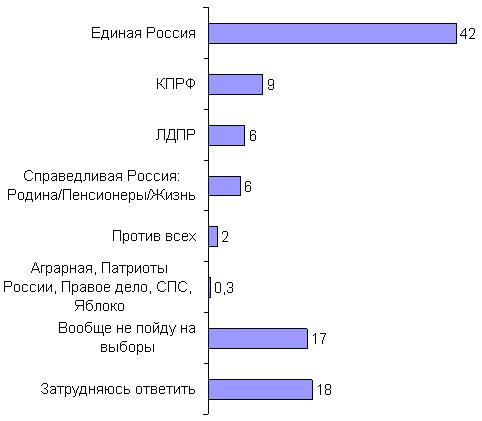 Между тем рейтинг политических партий применительно к гипотетическим выборам в Государственную Думу, по данным ряда демоскопических служб, выглядит более традиционным и привычным образом. Например, по результатам исследования компании «Башкирова и партнеры» (http://www.bashkirova-partners.ru) проведенного в начале сентября, голоса, поданные на выборах ближайшего воскресенья распределились бы следующим образом: