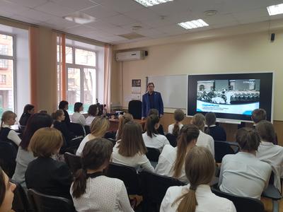 На занятии шла речь о важности знания истории своей страны и мира в целом, о патриотизме и, конечно, о Великой Победе в мае 1945 года, которая не только дает нам право гордиться своим народом, но и заставляет в очередной раз задуматься о той огромной цене, которую заплатили наши деды и прадеды за право жить в мире.