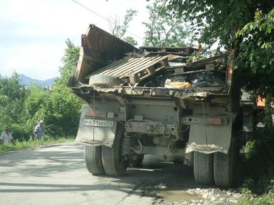 В субботу похожая картина была в селе Ахштырь, однако там жителям как-то удалось заблокировать движение транспорта. Наученные этим опытом, власти города организовали мусорную интервенцию в Черешню по всем правилам силовой операции: при поддержке полицейских. В воскресенье, после визита мэра, обратившегося к селянам с грозными предупреждениями, местные разошлись, и колонна самосвалов ринулась в низину, где нашли место для «чрезвычайной» свалки.