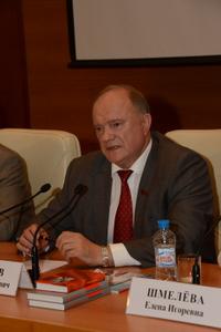 Затем слово для выступления было предоставлено Г.А. Зюганову. Лидер КПРФ сказал, что всегда следил за книгами, выходящими в серии «Жизнь замечательных людей». «Она дает возможность взглянуть на целые эпохи глазами главных действующих лиц. И очень важно, чтобы эта работа была достоверной и честной», - подчеркнул Геннадий Андреевич.