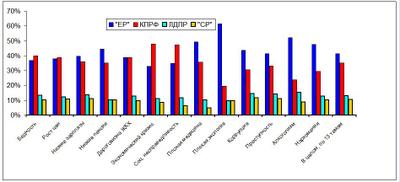Заметим, что ни в одной теме, соответствующей главнейшим запросам населения, ЛДПР и «СР» не опередили КПРФ.