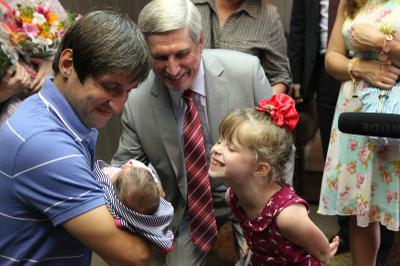 Иван Иванович пожелал детям не останавливаться на достигнутом, а новорожденной – расти здоровой и счастливой.