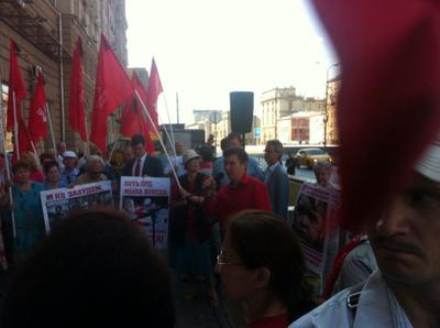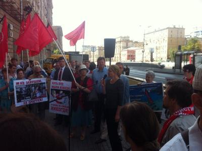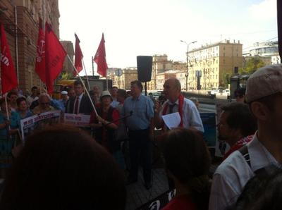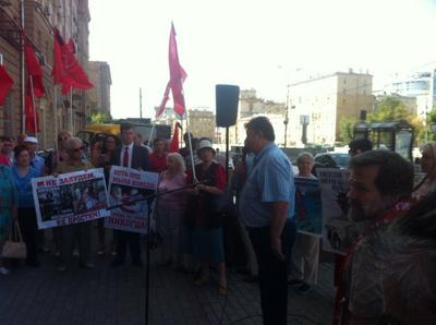 Сегодня, 9 августа, в Москве на Новинском бульваре коммунисты, комсомольцы и представители различных общественных организаций провели пикет против агрессивной политики США. Акция была приурочена к 69-летию атомной бомбардировки японского города Нагасаки. Открыл и вел пикет член ЦК КПРФ В.Р. Родин.