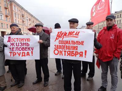Акция протеста посвящена «капитальному беспределу» в ЖКХа, когда власть и коммерческие структуры управляющих компаний перекладывают основную финансовую тяжесть на плечи простого населения. В митинге приняли участие представители городских общественных организаций: «Союз рабочих», ЛКСМ РФ, «Всероссийского женского союза – «Надежда России». Участники акции держали в руках плакаты: «Достойную жизнь человеку труда!», «Вернем социальные завоевания Октября!», «Цены и качество под контроль государства!» и др.