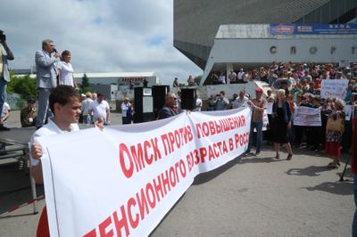 Ради протеста против обещанной людоедской пенсионной реформы и других антинародных инициатив правительства в Омске сумели организовать совместные действия представители большинства оппозиционных сил. Среди заявителей были не только представитель КПРФ, но и представители ЛДПР, ПАРНАСа, «Справедливой России», «Яблока» и «Партии дела». Приняли участие в митинге представители «Левого фронта», профсоюзов МПРА и «Новопроф», (Конфедерация труда), ПДС НПСР и многих других политических и общественных организаций. Несмотря на то, что некоторые политики из этих партий, особенно «мягко-оппозиционные» ЛДПРовцы и эСэРы на федеральном уровне поддерживают инициативы правительства, в регионах они вынуждены быть с людьми.