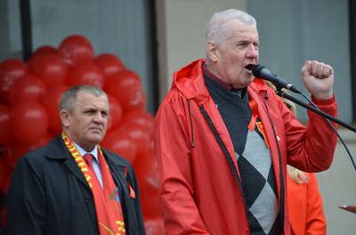 - Борьба между трудом и капиталом будет непримиримой. И время это показывает. Вот у нашего товарища здесь плакат «Агрессивная ложь о советском прошлом способствует появлению фашизма». А мы каждый день по телевизору видим как горе-политики разглагольствуют- «откуда ж он берется этот фашизм?». А взялся он из-за того, что двадцать семь лет из людей вытравливали все советское, что люди забыли о светлом советском прошлом, где человек труда пользовался всеми правами, - эмоционально отметил ветеран РОСТСЕЛЬМАШа, первый секретарь Первомайского райкома КПРФ г. Ростова-на-Дону Вячеслав Антохин, - Давайте сравним 24 года после победы Революции и 24 года после контрреволюционного переворота в 1991 году. После 1917 года были построены тысячи предприятий, народ получил массовое образование – это позволило советскому народу и молодому советскому государству выстоять и победить в жесточайшей схватке с фашизмом. А в современной России развал и растащиловка. Вот только на примере одного города Миллерово можно понять всю неспособность нынешней власти к созидательной работе. В 1990-м году в Миллерово работало 104 предприятия, даже в тяжелом 1926 году работало 41 предприятие, а сейчас под разговоры об импортозамещении и новой индустриализации в Миллерово работает аж 8 предприятий. И пока страна не перейдет на социалистический путь развития, у России нет будущего.