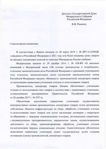 «Несмотря на экономические трудности для бизнеса, связанные с необходимостью внедрения в производственный цикл в течение ближайших двух лет экологически безопасных сырья и материалов, рассматриваемая мера видится оправданной», — написал Рашкин.