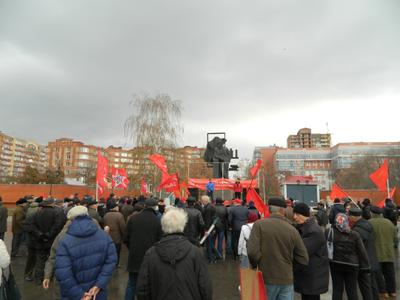 В Самаре, под красными знаменами коммунисты, комсомольцы, сторонники партии, представители Союза Советских офицеров, женских организаций и жители города вышли на праздничный митинг к памятнику Ленину.