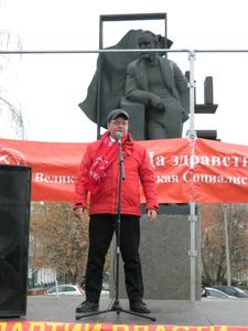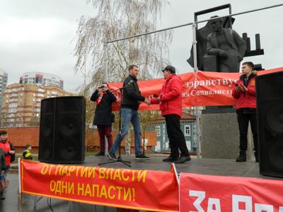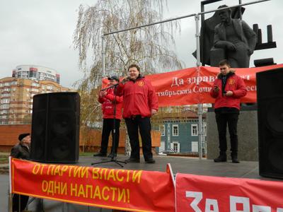 Первый секретарь Самарского обкома КПРФ Алексей Лескин поздравил участников митинга с этой знаменательной датой и подчеркнул, что Великий Октябрь явил миру социализм, как замену, изжившему себя, капиталистическому произволу. «В мировой истории трудно найти события равному ему по силе и глубине воздействия не только на российские, но и на международные общественные процессы. Сегодня только коммунисты готовы объединить все прогрессивные силы и высоко поднять Красное знамя. Социализм не остался в прошлом, он — магистральная дорога человечества к светлому будущему!». В своем выступлении Алексей Владимирович также отметил, что разгром прекрасного народного предприятия – совхоза им. Ленина и преследование его руководителя - Павла Грудинина наглядно подтверждает, что нынешняя правящая группировка откровенно игнорирует интересы народа, и готова пойти на грубые нарушения законности в своих корыстных интересах. Поэтому от имени всех коммунистов Самарской области настойчиво требуем прекратить преследования Павла Грудинина, а также глав-коммунистов Сергея Левченко и Валентина Коновалова, своей работой показывающих исключительно высокие результаты в экономике и социальной сфере.