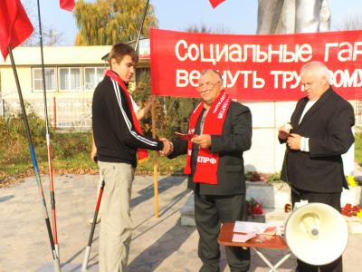 В рамках празднования дня Великого Октября районный Комитет во главе с первым секретарем райкома Н.М. Железневым организовал в станице Тбилисской торжественное мероприятие – митинг. У памятника В.И. Ленину состоялась церемония вручения комсомольских и партийных билетов новым членам ЛКСМ и КПРФ. Ряд активистов были награждены медалями ЦК КПРФ, посвященными 95-летию Ленинского комсомола.