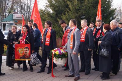 По инициативе коммунистов первичного отделения КПРФ станицы Каневская к памятнику В.И. Ленину в 11 часов для возложения цветов собрались как члены КПРФ, так и их сторонники.