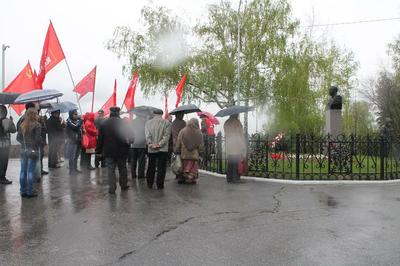 После выступлений коммунисты и сторонники колонной возложили цветы к памятнику Мусы Гареева - дважды Героя Советского Союза.