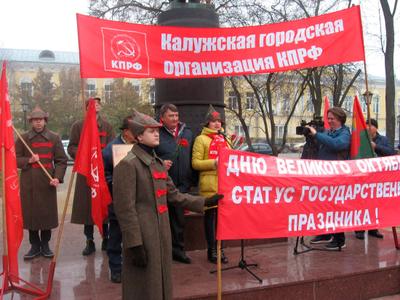 7 ноября 2018 года, в день 101-й годовщины Великой Октябрьской социалистической революции, давшей миру общенародное социалистическое государство, равного которому не было в истории, Калужским городским комитетом КПРФ совместно с Ленинским коммунистическим союзом молодежи, Движением в поддержку армии, организацией «Дети войны», советом рабочих и служащих города были проведены торжественное шествие и митинг.