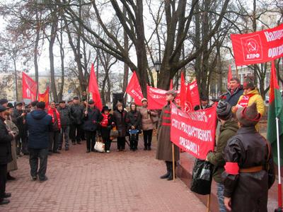 Собравшиеся выразили протест продолжающемуся разрушительному курсу страны и потребовали отставки правительства Медведева. Стране нужна новая политика и новая власть! Стране нужно правительство народного доверия — правительство национальных интересов! Участники митинга потребовали от власти принять решительные меры в защиту прав рабочих и служащих предприятий Калужской области, вернуть дню 7 ноября статус государственного праздника Великого Октября, и единогласно проголосовали за резолюцию митинга, посвящённого 101-й годовщине Великого Октября.