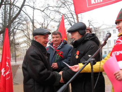 Ветеран партии, участник Великой Отечественной войны П.С.Жарков вручил памятные медали ЦК КПРФ «Дети войны» ряду товарищей.