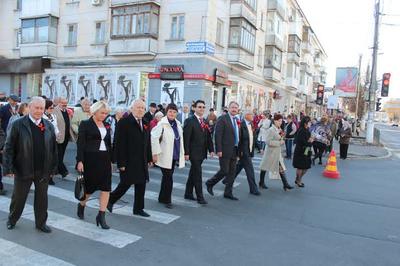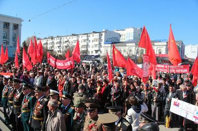 Дружное раскатистое «Ура!», лозунги «Слава Великому Октябрю!», «Вместе с народом вернём социализм», «Союзу братских народов - быть!», «Да здравствует Коммунистическая Партия Российской Федерации!», «Ленин! Партия! Комсомол!», «Новороссия! Мы с тобой!» гремевшие над улицами города, бодрые мелодии, исполняемые оркестром, всколыхнули Симферополь.