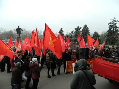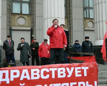 Лозунги митинга: «Слава Великому Октябрю!», «Выход из кризиса – социализм!», «Правительство в отставку!», «Коммунистов во власть!», «Красные придут — цены упадут!», «Программу КПРФ в жизнь!», «Непомерная квартплата — за молчание расплата».