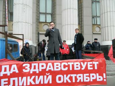 «Благодаря достижениям Великого Октября мы получили мощное государство под названием Советский Союз! За первую пятилетку Советской властью было построено 100 новых городов, 1,5 тысячи заводов и предприятий! А что сегодня мы наблюдаем? Посмотрите, как лихорадит весь капиталистический мир. Сегодняшние события показывают, что капитализм не работает! И именно сейчас все более актуально звучат лозунги Великого Октября! Товарищи поздравляю вас с праздником! Курс России – труд, народовластие, социализм!»
