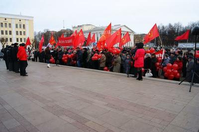 Демонстранты несли лозунги: "Слава Великому Октябрю!", "Власть и собственность народу!", "Губернатора Кировской области Н.Ю. Белых - в отставку!", "Нет росту цен и тарифов", "Мы не хотим оплачивать ваш кризис". После шествия на главной площади города состоялся праздничный митинг, в котором приняла участие тысяча человек.