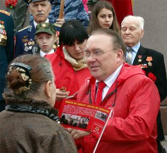 Мы категорически против сокращения рабочих на предприятиях, против закрытия школ и ФАПов в сельской местности, мы против того, чтобы учителей и врачей выкидывали за ворота без средств к существованию. Именно поэтому мы не пошли в колоннах с соглашателями. Именно поэтому мы требуем сегодня отставки либерального соглашательского правительства министров-капиталистов во главе Медведевым. Мы, коммунисты,требуем восстановить историческую справедливость в отношении драпировки Мавзолея В.И. Ленина. Я вместе с товарищами по партии из фракции КПРФ подписал обращение к президенту, чтобы прекратить издевательство над исторической памятью людей.