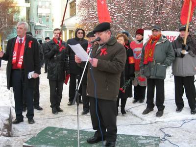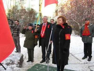 Она предоставила слово первому секретарю Мурманского обкома КПРФ Геннадию Степахно, который сказал о непреходящем огромном значении Великого Октября, который преобразил не только наш край, но и весь мир. Октябрь для нас знаковый месяц. Только что мы отметили 70-летие разгрома немецко-фашистских войск в Советском Заполярье. Она далась нелегко. К сожалению, опять фашизм около наших ворот. Нам всем нужно сплотиться, как, может, никогда прежде. Нам нужно потребовать от президента признать власть, которую избрали на Луганщине и Донецке.