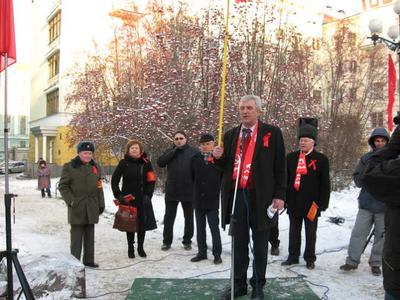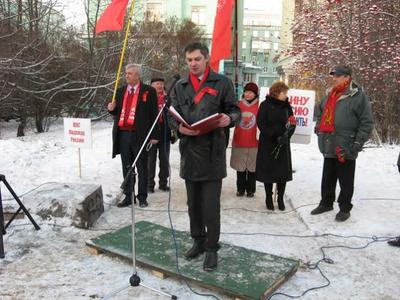 Первый секретарь Североморского горкома КПРФ Юрий Князев обратил внимание на попытки властей принизить Великий Октябрь. Не случайно придуман праздник так называемого народного единства. Но разве можно говорить о единстве электрика из ЖЭУ и Чубайса, развалившего единую энергосистему нашей страны, сварщика высокого разряда и господина Миллера или Сечина? Нет, этому не бывать! Сегодня, когда на передний план вновь выходят социальные проблемы, актуальными становятся лозунги Великого Октября.