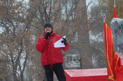 Первый секретарь Самарского ОК КПРФ Алексей Лескин: «Сегодня на этой площади собрались представители 11 городов и 27 муниципальных районов Самарской области. Я приветствую здесь ветеранов, молодёжь, рабочих и служащих! Мы отмечаем 99 годовщину Великой Октябрьской Социалистической Революции. Но что такое революция? Правильно, это когда верхи не хотят, а низы не могут. Но 18 сентября наши соотечественники показали, что готовы и дальше терпеть! Каждый второй не пришёл на прошедшие выборы из-за недоверия Правительству и системе власти. Люди не воспользовались возможностью высказать своё мнение. Но когда это произойдет и в какой форме, никому неизвестно. Мы с вами должны активно поработать, чтобы достойно встретить столетие Великого Октября. Желаю Вам здоровья, выдержки и красного флага над Кремлём! Ура, товарищи!».