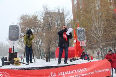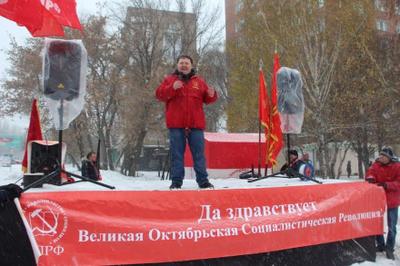 Лозунги митинга: «Слава Великому Октябрю!», «Нет росту цен и тарифов!», «Здоровье нации за деньги не купишь!», «Человеку труда - достойную жизнь!», «Тарифы на «коммуналку» – под жёсткий контроль народа!», «Прогрессивному налогу – дорогу в жизнь!», «Курс России — вперед, к социализму!».