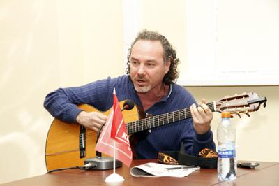 В завершение встречи собравшимся продемонстрировал своё творчество музыкант Алексей Поддубный. Зал горячо аплодировал.