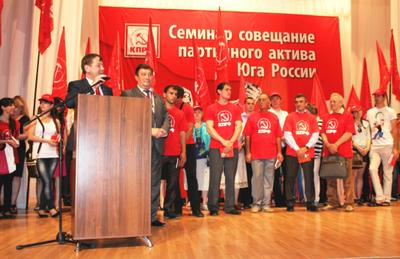 Пленарное заседание семинара-совещания открылось во Дворце культуры города под звуки Гимна Советского Союза. Зал на 700 мест участники встречи заполнили до отказа. Работу совещания открыл первый секретарь Ставропольского крайкома КПРФ В.И. Гончаров. Затем он пригласил на сцену ровно пятьдесят человек, пополнивших ряды партии и её молодёжной организации. Заместитель Председателя ЦК КПРФ Д.Г. Новиков вручил им партийные и комсомольские билеты. Отныне эти документы подтверждают их принадлежность к организации соратников и единомышленников.