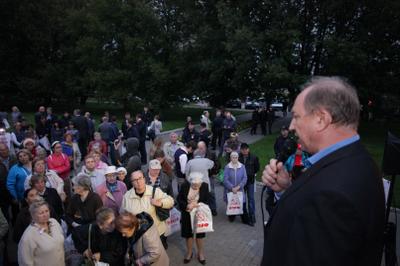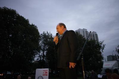 Действуя по закону, за 15 дней до мероприятия помощники депутата Госдумы от КПРФ Валерия Рашкина подали заявку в Префектуру. Однако ответ о том, что здесь давно уже запланирован праздник для детей, пришёл из оттуда только 7 сентября. После этого на месте состоялась не очень приятная беседа с начальником РОВД Выхино-Жулебино, который пытался напирать на то, что "здесь же дети, какой может быть митинг". А потом отдал приказ зачитать депутату его права и обязанности как организатору мероприятия. При этом коммунист твердо настоял на своём и привел серьезные аргументы, дав понять полицейским, что он прав. Отчасти вся эта ситуация дала положительный результат. На митинг пришло около 300 человек, многие подтянулись именно с "детского" праздника. "Пытаясь помешать нам, Префектура ЮВАО организовала рядом праздник. Лучше помочь нам было невозможно, люди пошли к нам. Префектуре пятёрка," - написал в своём Твиттере Валерий Рашкин.