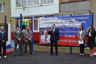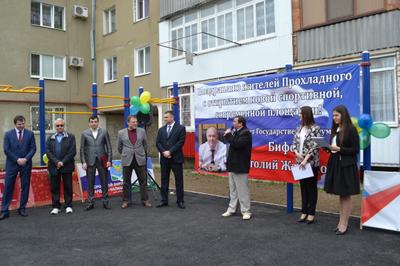 Накануне, на одной из главных улиц г. Прохладного в микрорайоне «Дружба» открылась современная спортивная площадка. В торжественной церемонии приняли участие и.о. главы местной администрации городского округа Прохладный Дмитрий Кочергин, председатель комитета Парламента КБР по культуре, развитию институтов гражданского общества и средствам массовой информации Борис Паштов, заместитель министра спорта КБР Заур Хежев, депутат Парламента КБР Замир Канаметов, помощники депутата Государственной Думы РФ Анатолия Бифова ,Аслан Каскулов и Залим Кочесоков, генеральный директор ООО «Баксан-Автозапчасть» Валерий Шарданов, руководитель инициативной группы по строительству Игорь Усенко и другие. Но главными участниками события были дети, а также и многие горожане. Как известно, г. Прохладный всегда славился своими спортсменами, а развитие и популяризация здорового образа жизни являются приоритетными направлениями социальной политики города.
