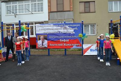 В приветственных речах выступающие подчеркнули важность занятий физкультурой и спортом, выразили надежду, что наши дети отдадут предпочтение спорту, а не пагубному влиянию улицы. Была выражена благодарность всем, кто участвовал и помогал в реализации данного проекта. Идея открыть во всех районах республики современные спортивные детские площадки принадлежит депутату Государственной Думы Анатолию Бифову . Это уже третий спортивный объект. До этого спортплощадки начали функционировать в Дугулубгее и Бабугенте. Строительство и оснащение спортивным оборудованием и инвентарём площадок осуществляется на личные средства Анатолия Бифова.