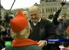 7. | Телеканал Вести # Вести Дата: 17 мая 2009 12:52:00 | Зюганов принял школьников в пионеры ...и Мавзолею Ленина. А красные галстуки им повязал сам лидер коммунистов Геннадий Зюганов. "Я очень рад, что дети выбираю это решение... ...лица ребят: здесь вы не увидите хулиганов, наркоманов", - сообщил Геннадий Зюганов, передают "Вести".... |
