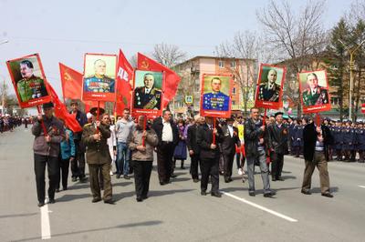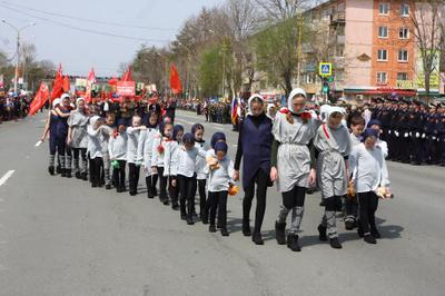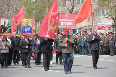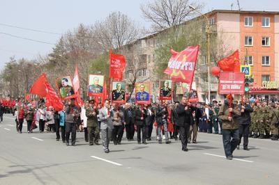 Участники шествия пронесли по главной улице города Артёма портреты маршалов Советского Союза во главе с генералиссимусом И.В. Сталиным, флаги СССР и организации «Дети войны», а также копию Знамени Победы. В одном ряду с последними свидетелями Великой Отечественной войны прошли сегодняшние мальчишки и девчонки – пионеры из артёмовских школ.