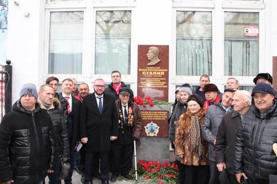 Это долгожданное событие было приурочено к 140-летию со дня рождения Иосифа Виссарионовича Сталина и к приближающемуся 75-летнему юбилею Победы Советского народа в Великой Отечественной войне. Сбор денежных средств на установку мемориальной доски осуществляли всем миром – на добровольные пожертвования коммунистов и сочувствующих граждан.