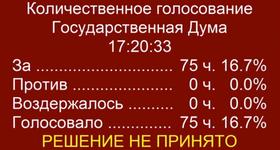 Депутаты «Единой России» снова не смогли нажать на кнопки. Они не за, не против и не воздержались. Просто не проголосовали. В результате закон принят не был.