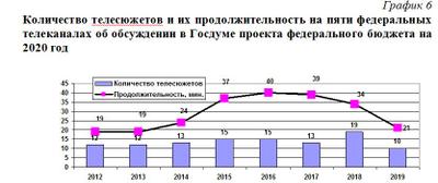 - В 2019 году общий объём эфирного времени, посвящённого рассмотрению проекта бюджетапо сравнению с прошлым годом снизился на 13 минут.