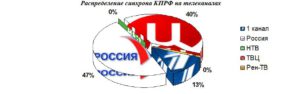 Наибольшую долю эфирного времени Компартии предоставили «Россия» и ТВЦ (15 и 10%). Рен-ТВ проигнорировал мнение коммунистов. НТВ не освещал принятие бюджета.