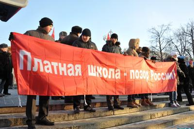 Народный депутат с возмущением отметил, что с принятием правительственного законопроекта школы будут превращены в коммерческие лавки. «Дети не вещи, школы – не Черкизон», «Долой чиновничий закон!», «Образование – для всех!», - вслед за О.Н. Смолиным скандировали участники митинга.