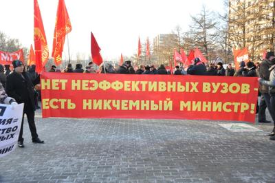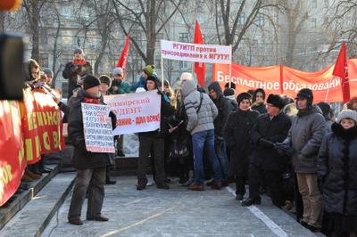 15 декабря в Москве на Пушкинской площади коммунисты провели митинг против принятия правительственного закона об образовании и антинародных реформ в этой сфере. На митинге выступили первый заместитель Председателя ЦК КПРФ, профессор МГУ, доктор педагогических наук, депутат Госдумы И.И. Мельников, заместитель Председателя ЦК КПРФ, Академик РАСХН, депутат Госдумы В.И. Кашин, президент общества «Знание» России, председатель Общероссийского движения «Образование для всех», депутат Госдумы О.Н. Смолин. Ведущие митинга второй секретарь МГК КПРФ, депутат Госдумы А.В. Потапов и первый секретарь московского горкома ЛКСМ РФ В.В. Обуховский.