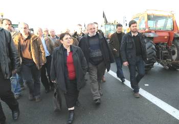 Алека Папарига – Генсек ЦК Коммунистической партии Греции посетила 24 и 25 января 2009 года несколько пунктов блокирования центральной автотрассы страны крестьянами, и горячо была встречена борющимся крестьянством.