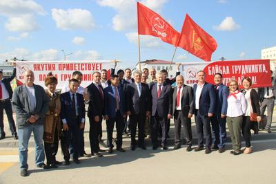 После прибытия в Якутск Павел Грудинин и первый секретарь рескома КПРФ Виктор Губарев совместно с коммунистами, комсомольцами и сторонниками партии возложили цветы к памятнику В.И. Ленину.