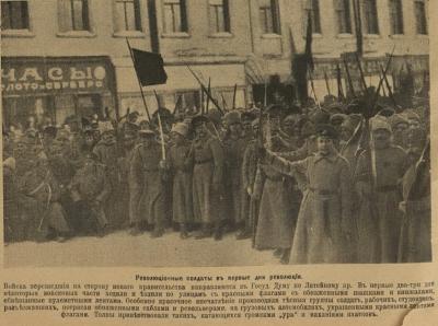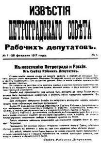 Из воззвания Совета рабочих депутатов: "Мы - за временное революционное Правительство, оно в состоянии будет созвать Всенародное Учредительное Собрание... Долой царскую монархию. Война войне. Да здравствует Временное Революционное Правительство" (Опубликовано в "Известиях" 28 февраля).