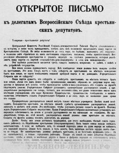В.И. Ленин пишет "Открытое письмо к делегатам Всероссийского Съезда крестьянских депутатов".