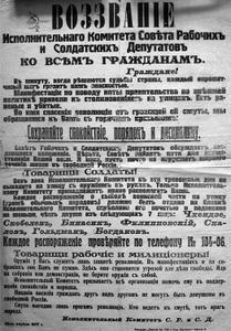 Исполком Петроградского Совета обратился с воззванием "Ко всем гражданам" с призывом сохранять спокойствие, порядок и дисциплину.