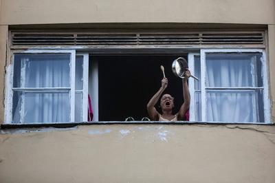 Жительница Рио-де-Жанейро выражает протест против политики президента Бразилии Жаира Болсонару после новостей об отставке министра юстиции. Сержиу Моро 24 апреля заявил, что покидает свой пост из-за разногласий с главой государства и обвинил Болсонару во вмешательстве в дела федеральной полиции.